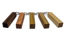 Die Schlüsselleise ist aus einem Stück Rosenholz gefertigt. Durch die konische Form ist es gewährleistet, dass die Schlüsselanhänger sicher in ihren Plätzen gehalten werden.