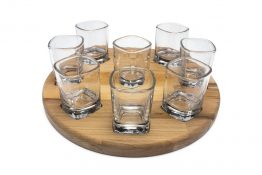 Das Holzbrett ist aus Buchenholz gefertigt. Die Vertiefungen sind passgenau gefräst und verhindern ein verrutschen der Gläser. Eine extra Vertiefung für den Daumen sorgt für einen sicheren Halt und ein angenehmes Tragegefühl.