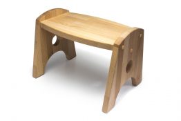 Zwei gefräste Grifföffnungen helfen dem Kind den Hocker an die richtige Stelle zu stellen und diesen eigenständig zu benutzen.